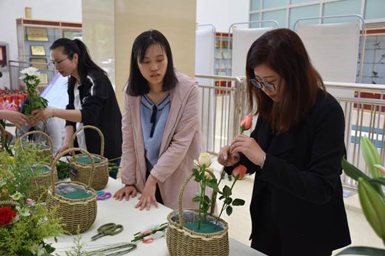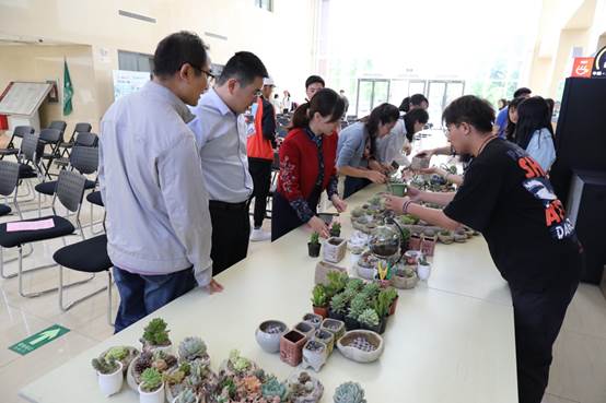 与会领导和嘉宾共同参观了近年来英国威廉集团官网师生成果展,共同体验了压花、插花和园林微景观制作过程。