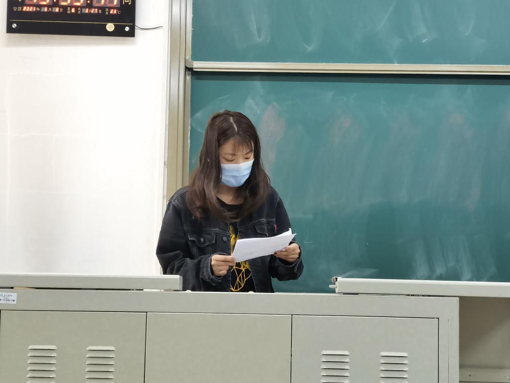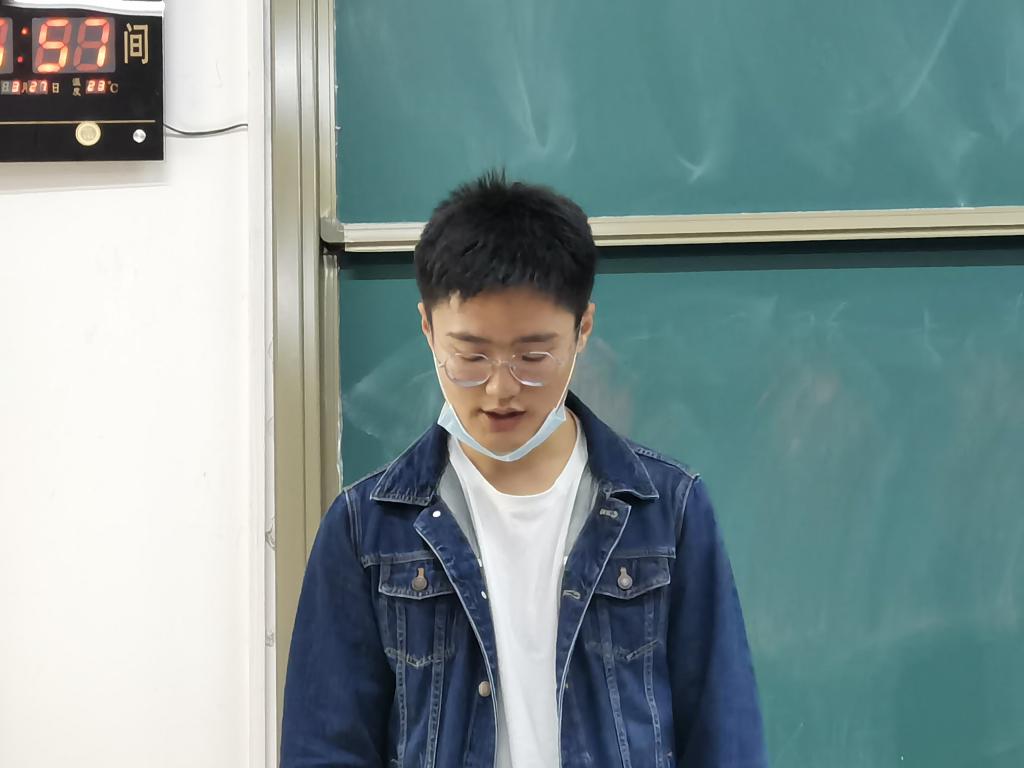 第四位做分享的同学是林业专硕班的郭苗苗同学。她先通过一段视频带我们走进《火种:寻找中国复兴之路》,接着从以下三个方面进行了细致的分享:复兴之路,青春点滴;读者与刘统对话;读党史做筑梦的青春人。最后运用习近平总书记曾对青年的寄语:“要始终把国家富强、民族振兴、人民幸福作为努力志向,自觉使个人成功的果实结在爱国主义这棵常青树上”。让同学们要始终坚定不移跟党走,把握机遇,努力奉献,用无悔青春托起民族复兴的“中国梦”,燃起同学们的奋斗的心火!