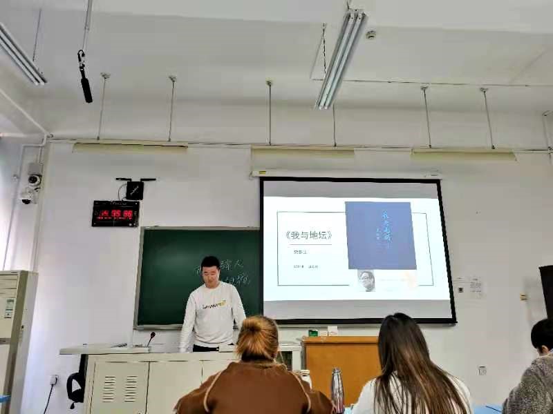 第一位进行分享的是林业专业研究生白云海同学,他为我们带来史铁生先生的《我与地坛》。《我与地坛》是史铁生先生所著的一篇长篇哲思抒情散文。文章充满哲思又极为人性化。白云海同学首先讲述了史铁生先生的生平和成就,让同学们了解这位伟大不屈于命运的作家;随后对这本书的主要内容进行了概述,最后白云海同学感慨到:“这次重读这本书,我不禁被他自强不息的精神和非比常人的毅力所感动,生命的意义就在于你能创造这过程的美好与精彩,生命的价值就在于能够镇静而激动地欣赏这过程的美丽与强壮。”
