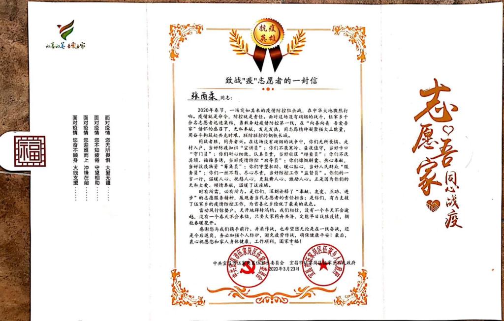更让我实实在在衷心感谢祖国的是公务员下沉到基层的每个社区,居委会和村委会的领导坚守在社区,安抚民众心情、开展防疫消杀、上门测量体温、进行物资分配等等,为人民群众解决疫情期间的各类问题。我的家人都患有需要长期服药的病,可疫情期间很难买药,这使我们都很是担心。当村委会干部得知我们的困难和需求后,专程为我们进行了申请,帮忙买到了日常必备的药品,使我们安下心来,衷心的感谢为我们提供帮助的工作人员!更真诚的感慨“此生无悔入华夏”的时候是收到爱心大米、白菜和粮油的时候,“一方有难,八方支援”不是说说看而已;对比意大利、日本、美国等国外的各种迷惑操作的时候,我就要更加真诚地赞美我的祖国了。于是,当了解到有志愿者活动,我便毫不犹豫的向所在社区申请成为志愿者。直到三月,我才被批准作为所在社区的唯一一名志愿者。