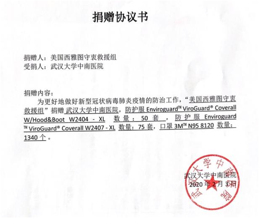 2020年1月31日,经过线上视频会议及商讨,我们决定成立“西雅图守忠救援组”,我们来自中华志愿者协会、人福医药、以及美国南加州湖北同乡会等。由北美众多华人线上组建的海外华人募捐团体也吹响了集结号!我们承诺所有的物资能够直达最需要的一线下级医院,直接对接医院的需求,所有善款的利用均可以得到募捐人的监督并向所有的募捐人员提供证书,募捐的过程均毫无保留的在微信群里透明汇报。