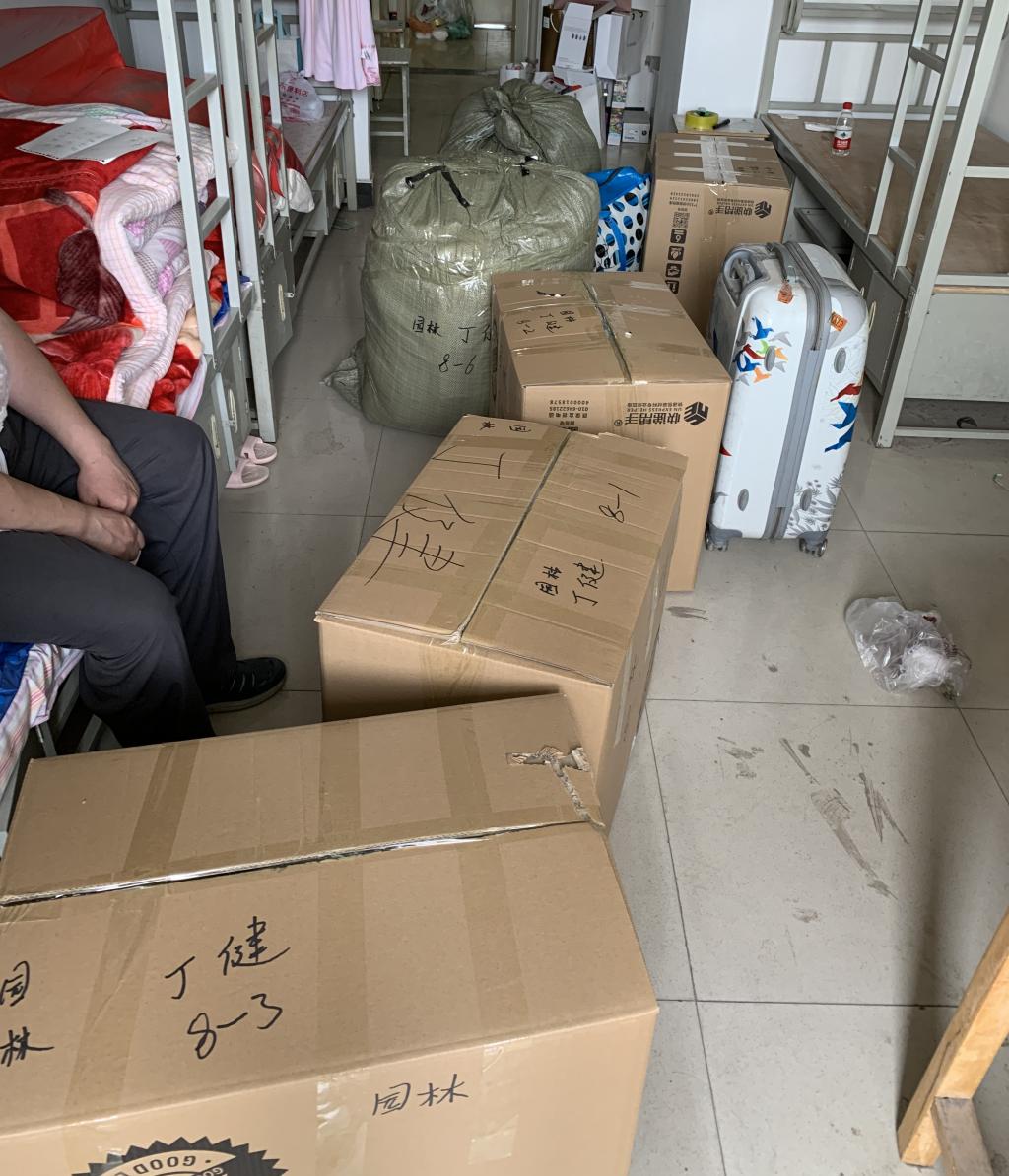 志愿服务团队通过视频直播的方式与研究生毕业生进行联系,仔细询问打包物品,细心整理收入箱子,打包和邮寄工作进行地有条不紊,最终为14名研究生毕业生完成行李打包工作。
